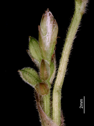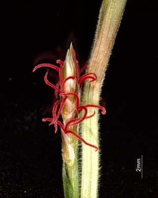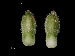 【同定のカギ】林縁や林床に生える多年草、長い匐枝がある。植物体全体に軟毛を密布。苞葉は、仏炎苞状、葉身は短く刺状。果胞は、雌鱗片と同長かやや長い、陵間に5−8脈あり、密に毛が生え、嘴は短く、口部は平切形。基部に短柄がある。柱頭は3岐。Carex ciliatomarginata Nakai 【国内分布】本州、四国、九州。【国外分布】朝鮮、中国東北部。 【ノート】ケタガネソウはタガネソウに似るが全体に軟毛を密布し区別できる。ケタガネソウは、やや湿った林縁や、草原にも見られ長い匐枝で増殖する。
