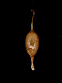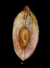 【同定のカギ】高山の礫地に生える多年草。ゆるく叢生する。基部の鞘は濃赤紫色、葉の裏面に乳頭状突起を密布する。雌小穂は楕円形で、鱗片は濃赤褐色〜濃赤紫色で目立つ。果胞は楕円形で細脈があり、口部は急に狭まって、嘴部はほとんど無い。痩果の基部に柄がある。柱頭は3岐。【国内分布】鳥取県大山、日本固有。 【ノート】ミヤマアシボソスゲに似るが、果胞の幅が広いことで区別できる。鳥取県の大山で発見され、小山により1955年に新変種として記載された。ミヤマアシボソスゲが南方に隔離分布し分化したものと考えられる。