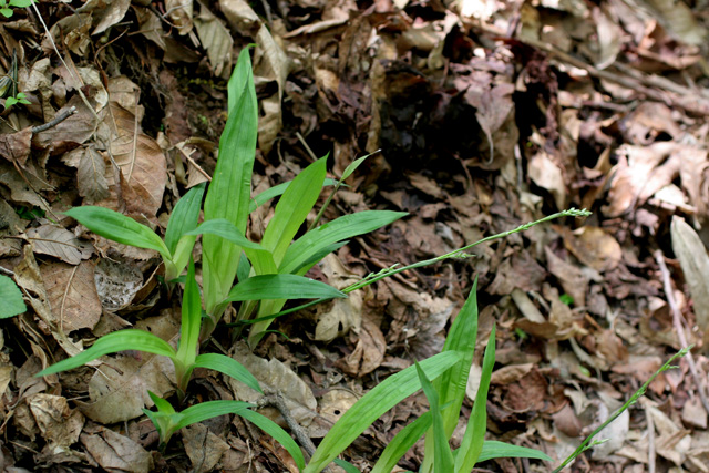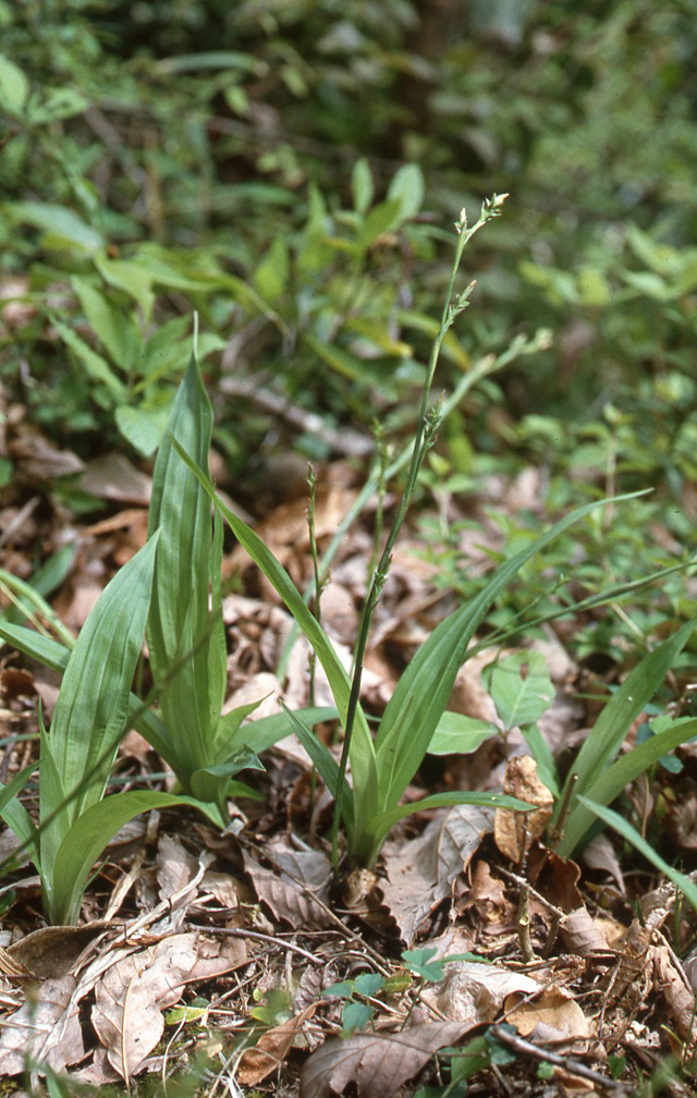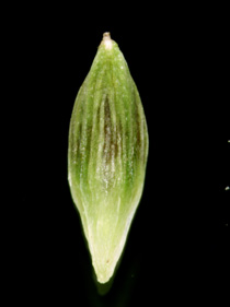 【同定のカギ】林縁や林床に生える多年草、大株とならず、長い匐枝がある。葉は、幅広く披針形、短毛を疎布。基部の鞘、淡褐色〜赤褐色。果胞は、雌鱗片と同長、陵間に4−6脈あり、平滑、嘴は短く、口部は平切形、基部に短柄がある。柱頭は3岐。Carex siderosticta Hance 【国内分布】】北海道、本州、四国、九州。【国外分布】朝鮮南部、中国。 【ノート】スゲ属植物で葉の幅が広く、披針形となるグループにはタガネソウ、ケタガネソウ、ササノハスゲの3種がある。染色体数は2n=12、24で、スゲ属で最も少なく、原始的なグループと考えられる。