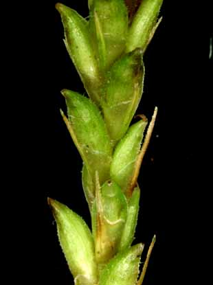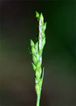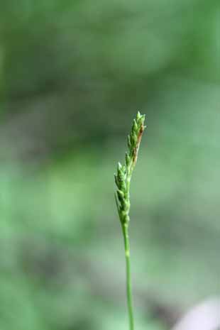 【同定のカギ】やや乾燥した林内や林縁に生える多年草で密に叢生する。有花茎は上部がざらつく。雄小穂は線柱状で短い。果胞は、雌鱗片より長く、中央が凹んだ紡錘形、有毛、短嘴、口部は凹形。痩果は、密に果胞に包まれ中央が凹んだ紡錘形、頂部に環状の付属体がある。柱頭は3岐。Carex genkaiensis Ohwi 【国内分布】本州(大阪府)、小豆島、九州(福岡県、佐賀県、長崎県)。【国外分布】朝鮮南部。 【ノート】ゲンカイモエギスゲはタイワンスゲに似るが、果胞が短嘴、痩果の頂部の付属体は環状で円柱状とならない。