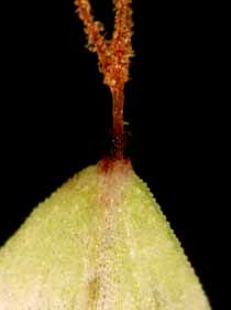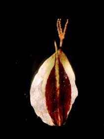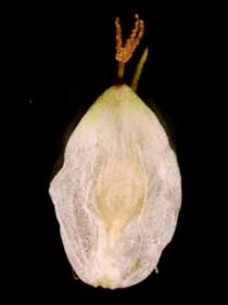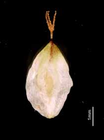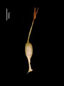【同定のカギ】高山の草地に生える多年草でやや叢生する。苞葉の鞘は、短く葉舌が赤紫色。小穂は、上部に雌花、下部に少数の雄花。果胞は、雌鱗片より長く、薄膜質で中の痩果が透けて見え、稜間に2本の細脈があり、無毛、上部は急に狭まり短い嘴となる。褐色の斑点を持つことがある。口部はやや凹形で黒褐色。痩果は、ゆるく果胞に包まれ、下部に長柄がある。柱頭は3岐。(Carex urostachya Franch.) 【国内分布】北海道、本州(東北地方、北アルプス、白山、八ヶ岳)、南千島。【国外分布】千島列島。 【ノート】キンチャクスゲは、クロボスゲに似るが、小穂が雌雄性であり、基部の鞘の色が薄く淡褐色で、果胞が4−5 mmと長いことで区別できる。