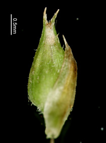 【同定のカギ】林床や路傍に生え叢生し、匐枝はない。頂小穂は雄性で柄があり、雄鱗片は緑白色。雌鱗片は芒があり、果胞より短い。果胞は、密毛、短嘴、口部は鋭い2歯。痩果の頂部に盤状付属体。柱頭は3岐。Carex polyschoena H.Lev. et Vaniot 【国内分布】】九州(対馬)。【国外分布】韓国。 【ノート】シロホンモンジスゲの特徴は、叢生し匐枝がなく、雄小穂が淡色で果胞の口部が鋭2歯、雌鱗片の芒がやや長いことである。シロホンモンジスゲは、アキイトスゲに似るが、雌鱗片の芒は長くない、果胞の先端は急に狭くなり、口部が2歯なり、痩果の稜が凹まない点が異なる。