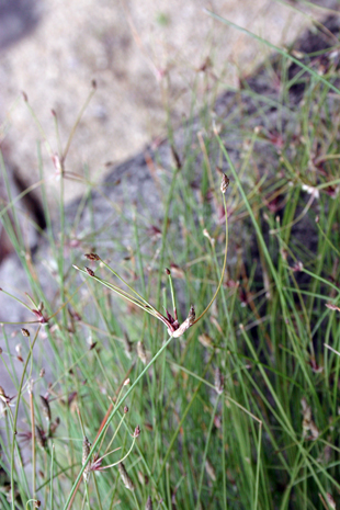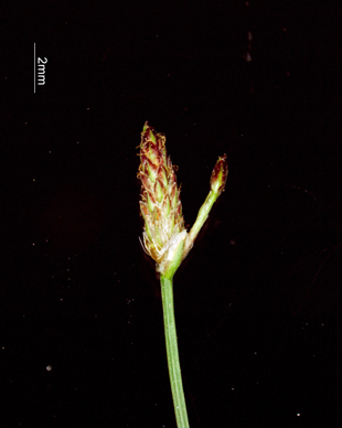 【同定のカギ】湿地や池の周辺、水田跡地に生える1年草または多年草で、匐枝はない。有花茎は、細く、直立または斜上し、高さ10−20 cm、鮮緑色。小穂は、頂生し、卵形、密に花をつけ、長さ4−6 mm、時に基部に腋芽ができる。鱗片は、長さ1−1.5 mm、やや鈍頭、一部に錆色の部分がある。痩果は、長さ0.7−0.8 mm、黄緑色、横断面は鈍3稜形。柱基は、3角錐状、幅は痩果の1/3、長さは幅の1.5倍。刺針状花被片は、6本、痩果の1.2−1.5倍の長さで下向きにざらつく。柱頭は、3岐。Eleocharis congesta D.Don var. japonica (Miq.) T.Koyama 【国内分布】北海道、本州、四国、九州。 【ノート】オオハリイやエゾハリイによく似るが、オオハリイとは痩果の長さが0.7−0.8 mmと短い (オオハリイは1 mm) 。有花茎が倒れて小穂から腋芽を出すことが多い。