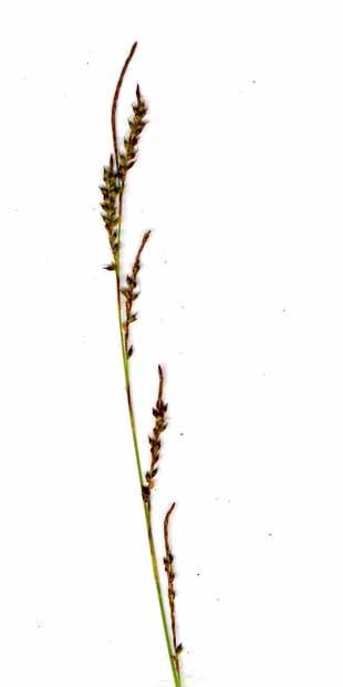 ナキリスゲ節の中で唯一、頂小穂は糸状ですべて雄性であり、雌花を付けない。