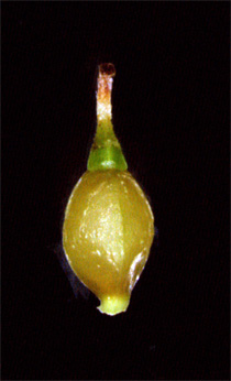 | 果胞と鱗片 果胞は鱗片より長い 果胞、口部の縁は鋸状 |