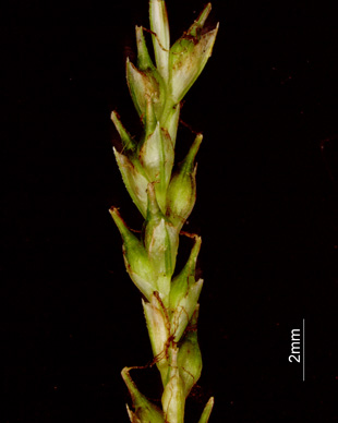 | 雄小穂、鱗片は赤紫色 雌小穂、鱗片の色が薄いものもある |