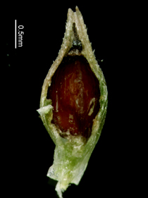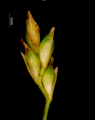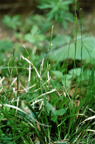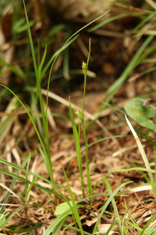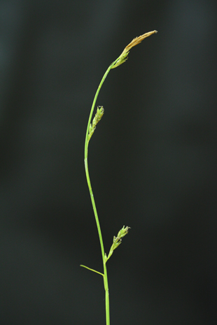 【同定のカギ】林床や林縁に生え疎に叢生、短い匐枝がある。有花茎の上部はわずかにざらつく、基部の鞘は淡褐色。果胞は、雌鱗片と同長または長く、嘴の縁に細鋸歯がある、短嘴、口部は2歯。痩果は、密に果胞に包まれ、頂部に盤状付属体。柱頭は3岐。Carex sachalinensis F. Schmidt 【国内分布】北海道、本州(岩手県早池峰山)。【国外分布】千島。サハリン、アムール。 【ノート】雌小穂は短く、長い柄があり、北海道を中心に分布する。もともと「ゴンゲンスゲ」と呼ばれていたが、タイプロカリティがサハリンであり、日本では北海道にしか分布しないため、勝山 (2005) により新称「サハリンイトスゲ」への提案がなされた。