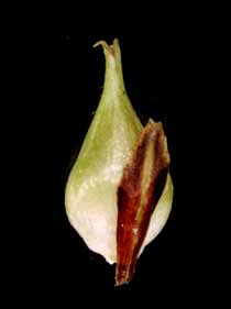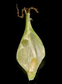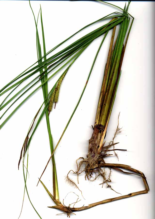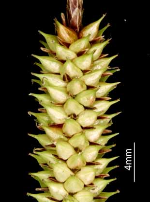 【同定のカギ】湖沼の縁に生える多年草、横走する根茎がある。基部の鞘は、軟質、赤褐色、前面が糸網状に分解。小穂は頂小穂の2〜4個は雄性で長い柄がある。鱗片は短褐色。果胞は、熟すと開出、雌鱗片より長く、多数脈、無毛、短嘴、口部は鋭2歯。痩果は緩く果胞に包まれ、花柱は湾曲。柱頭は3岐。Carex rostrata Stokes 【国内分布】北海道(雨竜沼、越後沼)。【国外分布】北半球の周北極地域。 【ノート】カラフトカサスゲは、北海道の沼地の岸に見られ、オオカサスゲとは、果胞が小さく、葉も細いことで区別される。
