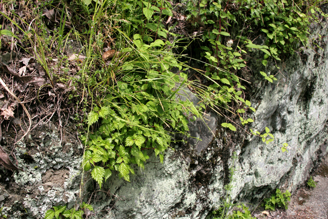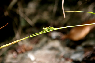 【同定のカギ】沿海地の明るい樹林内や草地に生える多年草でやや叢生し、長い匐枝がある。有花茎や葉は、やや硬い。果胞は、雌鱗片より長く、やや開出し楕円形、稜間はほぼ無脈、疎らに微毛が生え、基部は短柄、上部はしだいに狭まり長嘴となり、口部は鋭2歯。柱頭は3岐。Carex Carex macrandrolepis H. Lev. 【国内分布】本州(東海地方以西)、四国、九州、対馬、トカラ列島(宝島)、伊豆大島。【国外分布】朝鮮南部、台湾。 【ノート】カタスゲは、全体が硬く、果胞に疎らに毛があり、嘴が長いことで他のヒカゲスゲ節の種と区別される。海岸の日当たりの良い林縁によく見られる。