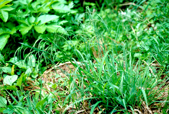 カワラスゲは、湿った山道や路傍によく見られる。特に、山道の踏み跡にも大きな集団が見られ、地下茎が強いと考えられる。