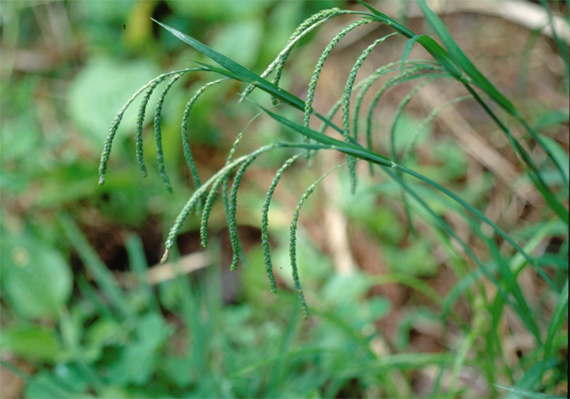 カワラスゲ 花序 雌小穂は細長く下垂する。