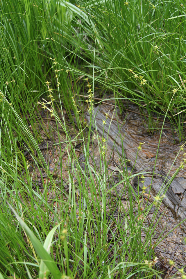 ヤチカワズスゲに似るが、植物体や果胞が小さい。