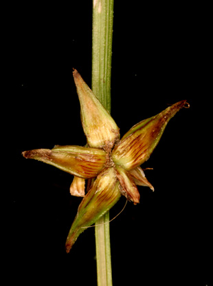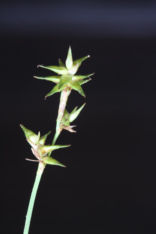 カワズスゲ 花序 雌雄性で下部に少数の雄花