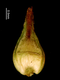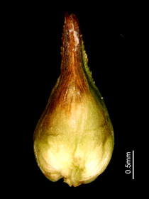 果胞と鱗片 果胞、背面、基部は肥厚 果胞、腹面