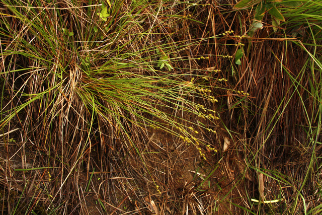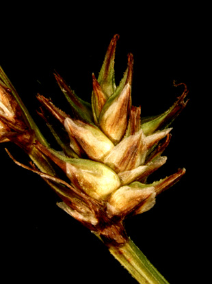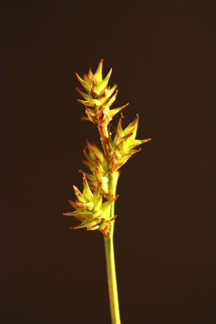 キタノカワズスゲ 花序 花序、果胞は完熟しても反り返らない。