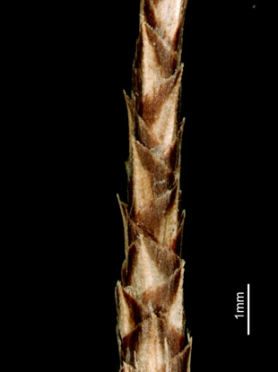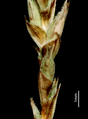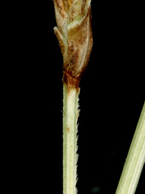小穂の柄、ざらつく 果胞、短い軟毛 果胞、口部は2歯で開出