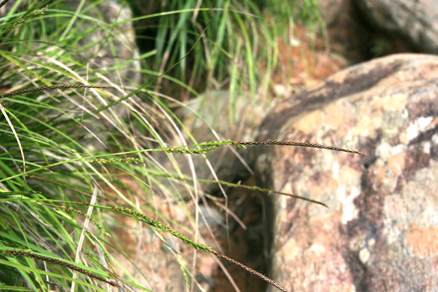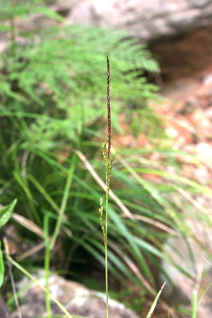 コバケイスゲ 生育地、岩場 花序、小穂は線形〜線柱形