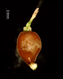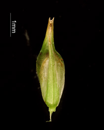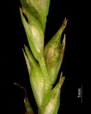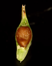 クジュウスゲ、匍蔔枝を持つ 雌小穂、果胞の嘴が長い