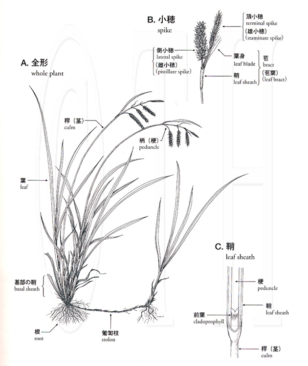 スゲ属植物の形態解説 Key to