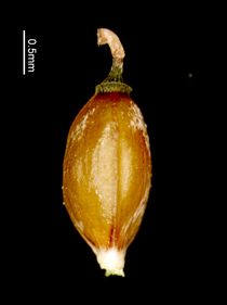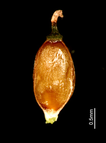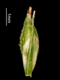【同定のカギ】乾いた路傍や林床に生える多年草。苞の葉身は刺状か無い。花序は、雄小穂を頂生し、側生する雌小穂は離れてつき柄は短い。鱗片は、淡緑色で芒は短い。果胞は、雌鱗片より長く、稜間に5−7脈があり、密に短毛があり、上部はしだいに狭まり短嘴となり、口部は平切形。柱頭は3岐。Carex horikawae K.Okamoto 【国内分布】本州(長野県南部、愛知県、瀬戸内海沿岸)、四国(瀬戸内海沿岸)、九州(宮崎県)。日本固有。 【ノート】ミセンアオスゲは、アオスゲやイトアオスゲと似るが、雌小穂が互いに離れてつき、雄小穂は柄があり、苞の葉身がほとんどないことで区別できる。