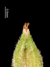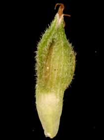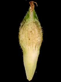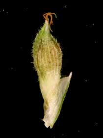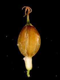 果胞の口部は凹形 果胞と痩果 痩果、基部に長い柄