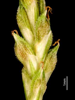 雌小穂 鱗片は緑白色 果胞は密に毛に包まれる