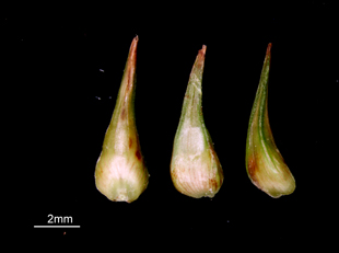 Carex omiana Franch. et Sav.【国内分布】北海道、本州、四国、九州。日本固有。 【同定のカギ】湿原や湿地に普通に生える。無柄の小穂を離れて付ける。小穂は、雌雄性で基部に少数の雄花。果胞は、雌鱗片より超出し、無毛、完熟すると著しく開出し、基部は海綿状に肥厚、長嘴、嘴の縁はわずかにざらつき、口部は2歯。柱頭は2岐。 【ノート】ヤチカワズスゲは、日本の湿原に生育する代表的な種である。カワズスゲやチャボカワズスゲとは植物全体が大型で、果胞の長さが4.2 mm以上と大きいことで区別する。