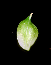 Carex flabellata Lev. et Vant.【国内分布】北海道、本州、四国。日本固有。 【同定のカギ】山道脇の水湿のある所に生え、大株となる。葉は、ほぼ平滑、裏面に乳頭状突起があり粉白色。有花茎は、平滑。雌小穂は、柄が長く下垂する。果胞は、雌鱗片より長く、稜間に3−4脈があり、無毛、嘴は短く長さ0.2−0.3 mm、口部は凹形または2小歯。柱頭は2岐。 【ノート】ヤマテキリスゲは、テキリスゲやオタルスゲに似るが、有花茎や葉がほぼ平滑であることと果胞に細脈があることで区別される。