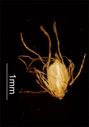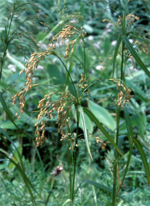 【同定のカギ】平地や山地の湿地に普通に生える大型の多年草で叢生する。有花茎は、高さ100−150 cm、硬く、横断面は鈍3稜形。花序は、1−5個、頂生および側生し、数回分岐し、多数の小穂を密につける。花序枝はざらつく。小穂は、1−5個ずつ集まってつき、長楕円形、赤褐色。痩果は、長さ約1 mm、横断面は扁3稜形。刺針状花被片は、6本、糸状で屈曲し、長く縮れていて、先端には疎らに上向きのざらつきがある。柱頭は、3岐。Scirpus wichurae Boeck. 【国内分布】北海道、本州、四国、九州。日本固有。 【ノート】アブラガヤの品種としてチュウゴクアブラガヤ (S. wichurae Boeck. subsp. lushaensis (Ohwi) T.Koyama) が報告されているが、形態の変異は連続的である。エゾアブラガヤとは、小穂が長楕円形であることで異なる。