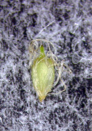 【同定のカギ】山地の湿地に生える多年草で叢生する。有花茎は、高さ80−150 cm、硬く、平滑で横断面は鈍3稜形。花序は、通常1個頂生し、数回分岐し、多数の小穂を密につける。花序枝はざらつく。小穂は、枝の先端に2−4個ずつ集まってつき、球状−楕円形、幅3−4 mm、赤褐色。痩果は、長さ約1 mm、横断面は3稜形。刺針状花被片は、6本、糸状で屈曲し、著しく長く、縮れていて、先端には疎らに上向きのざらつきがある。柱頭は、3岐。Scirpus sylvaticus L. var. maximowiczii Regel. 【国内分布】北海道、本州。【国外分布】サハリン、満州、朝鮮南部、ウスリー。 【ノート】クロアブラガヤは、花序が通常1個頂生する。小穂の鱗片は黒色で、刺針状花被片は、疎らに下向きのざらつきがある。