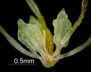 | 鱗片は、長毛があり、芒も有毛。 花被片は、3本が針状、他の3本が板状。 |