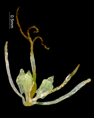 【同定のカギ】池の砂地や湿地にまれに生える1年草で、全体に軟らかい毛がある。有花茎は、高さ10−40 cm、横断面は3稜形。花序は、1−2個の分花序に3−10個の小穂を密につける。鱗片は、長毛があり、長さ1.6−1.8 mm、薄膜質、約1 mmの長く外曲した有毛の芒を持つ。花被片は、6本、そのうち3本は針状で短いかまたはなく、その他の3本は平板状で4角形、痩果と同長または少し長い。痩果は、長さ約0.7 mm、横断面は3稜形、淡褐色、平滑。柱頭は、3岐。