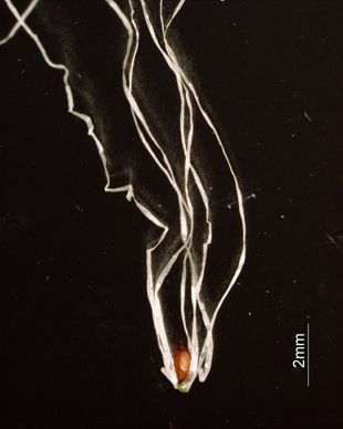 【同定のカギ】高層湿原に生える多年草で、根茎を多数伸ばす。有花茎は、高さ20−30 cm、鋭3稜がありざらつく。葉は、ほぼ退化して鞘と同化し基部に集まる。小穂は、個頂生し、長さ5−7 mm、果時には綿毛状の刺針が長く伸びる。鱗片は、鈍頭。痩果は、長さ1−1.2 mm、平滑、茶褐色。刺針状花被片は、6本、長く約2.5 cmにも及ぶ、灰白色。柱頭は、3岐。【国内分布】北海道、本州中部以北の日本海側。【国外分布】カムチャッカ半島、千島、サハリン。北半球の亜寒帯に広く分布。 【ノート】ヒメワタスゲは、刺針状花被片が大変長く、果時にはワタスゲのような白い綿状の毛が目立つ。