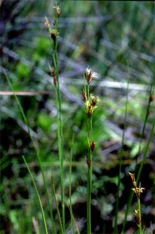 【同定のカギ】日当たりの良い湿地に生える多年草。植物体は叢生し匐枝はない。基部の鞘や鱗片葉赤紫色。花序は、2〜3個の分花序からなる。痩果は白色で、細かい網紋がある。刺針状花被片は、6本あり、痩果の2倍以上の長さで、脱落しやすく、上向きにざらつく。柱頭は3岐。【国内分布】本州 (福島県、茨城県、千葉県、静岡県以西)、九州、琉球。【国外分布】マレーシア、オーストラリア。 【ノート】瀬戸内地方では、海岸近くの湿地に群生する。大株となり、鱗片や基部が赤紫色となる。