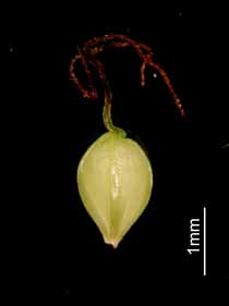】河岸や水湿地に群生する多年草で、叢生し、匐枝がある。雌小穂は柱状で柄はほとんど無く密花、雌鱗片は鮮緑色で、長い芒を持つ。果胞は疎に有毛、嘴が長く口部2小歯、熟すと開出する。柱頭は3岐。