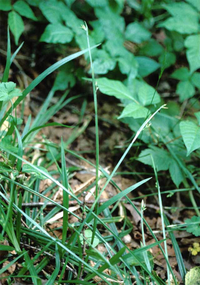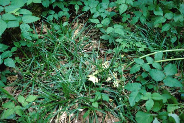 【同定のカギ】Carex filipes Franch. et Sav. var. kuzakaiensis (M.Kikuchi) T.Koyama 【国内分布】本州(東北地方)。日本固有。 ブナ帯から亜高山帯の樹林内に生える多年草で、叢生する。有花茎は、高さ30−60 cm、平滑、軟質。葉は、深緑色、平滑、来年度まで残る。基部の鞘は、赤紫色。雌小穂は、長柄、疎らに花をつける。果胞は、雌鱗片より長く、広卵形、有脈、無毛、口部は斜切形。柱頭は3岐。 【ノート】オクタマツリスゲはヒロハノオオタマツリスゲに似るが、雄小穂の柄が短く、鱗片が淡緑色である。