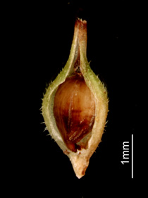 果胞、まばらに有毛 果胞と痩果 痩果