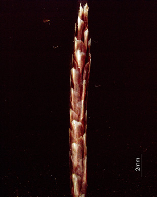 | 雄小穂、鱗片は赤紫色 雌小穂、鱗片の色が薄いものもある |