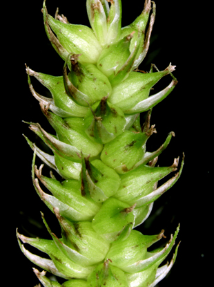 【同定のカギ】湿った草地や川岸に生える多年草、ヤワラスゲと同所に群生して生えることがあり、密に叢生する。芒の除いた雌鱗片は、果胞とほぼ同長。果胞は、稜間に多数脈があり、無毛、長嘴、口部は凹形、完熟すると開出する。乾燥すると、黒色に変色する。柱頭は3岐。Carex benkei Tak.Shimizu 【国内分布】紀伊半島、九州、対馬。日本固有。 【ノート】ヤワラスゲとは、基部の鞘の色が薄く、芒を除く雌鱗片と果胞がほぼ同長で芒が長く、果胞の口部は凹形であることで区別できる。ベンケイヤワラスゲは、ヤワラスゲと混生すると消失することが多い。