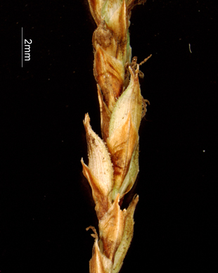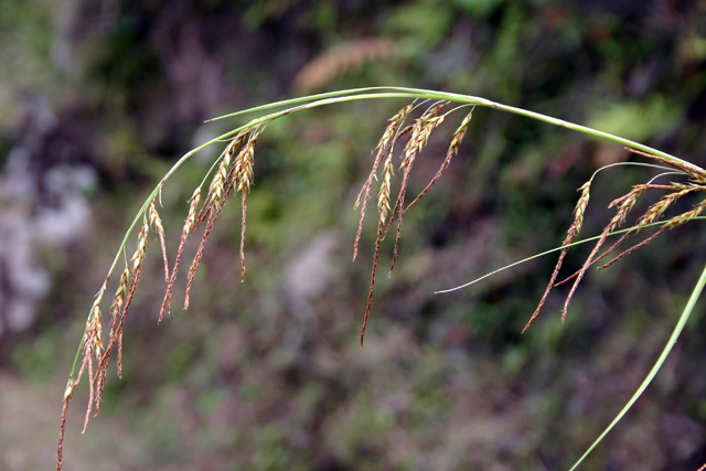 【同定のカギ】日当たりの良い山地の斜面に生育する多年草で叢生する。小穂は、1つの鞘に4〜8個の小穂が付く。小穂は雄雌性で、雄花部は小穂の4/5以上を占める。柄は長く糸状。果胞は、雌鱗片より長く、疎に有毛、膜質、多数の細脈がある。頂部は急に狭まり短嘴となり、口部は鋭2歯で褐色を帯びる。痩果は、完熟すると果胞が裂開し痩果が突出することがあり、基部に短柄がある。表面には横紋があり、頂部に小さい円柱状付属体がある。柱頭は3岐。Carex tokarensis T.Koyama 【国内分布】トカラ列島(中之島、黒島)。日本固有。 【ノート】フサカンスゲは、根茎がなく、葉はコカンスゲほどざらつかない、4−8個の雄雌性小穂を束生する。生育地はトカラ列島の中之島や黒島に限られており、日当たりの良い岩場斜面に群生している。