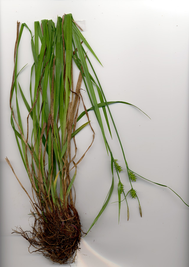 【同定のカギ】湿った草地に生える多年草で、ゆるく叢生する。葉や基部の鞘は、有毛。基部の鞘は、赤褐色。頂生する雄小穂は、長い柄がある。雌鱗片は、淡褐色で中肋は緑色。果胞は、:雌鱗片より長く、多数脈があり、無毛、やや長嘴。柱頭は3岐。【国内分布】北海道、本州(青森県、岩手県、秋田県、群馬県、長野県)、九州。【国外分布】朝鮮、中国東北部、ウスリー。 【ノート】ハタベスゲは、アカンカサスゲに似るが、柄の長い雄小穂は1個で、果胞に毛が無いことが異なる。