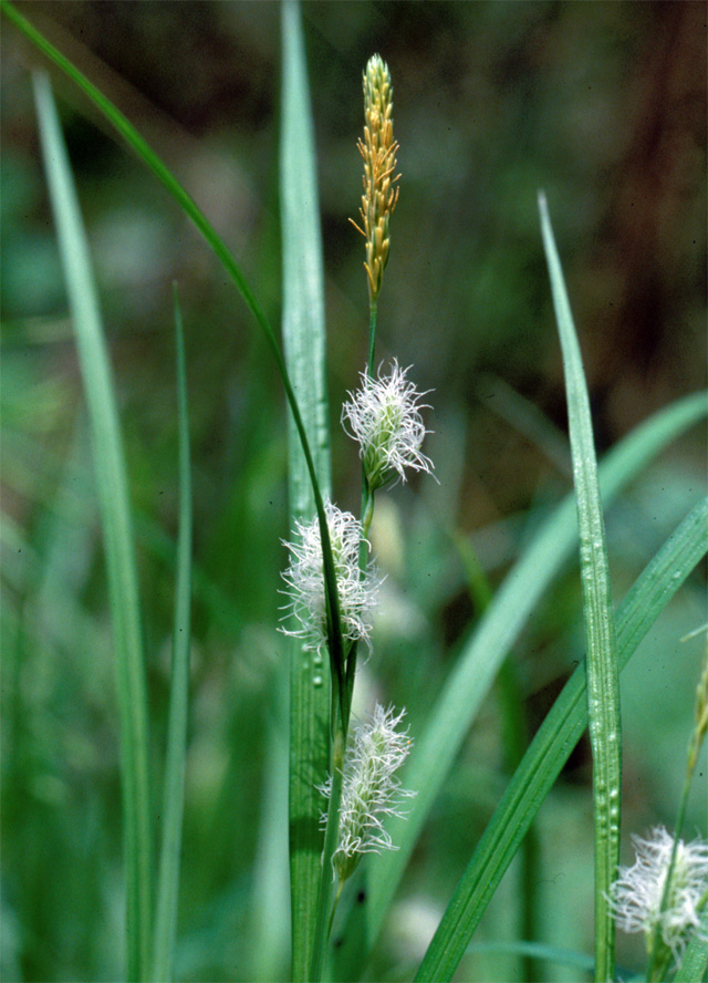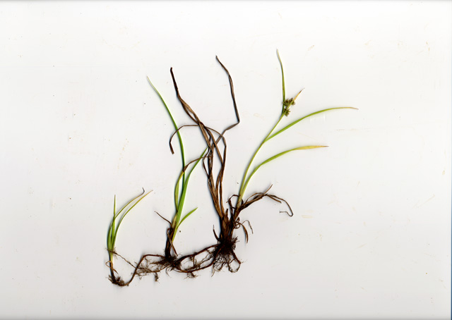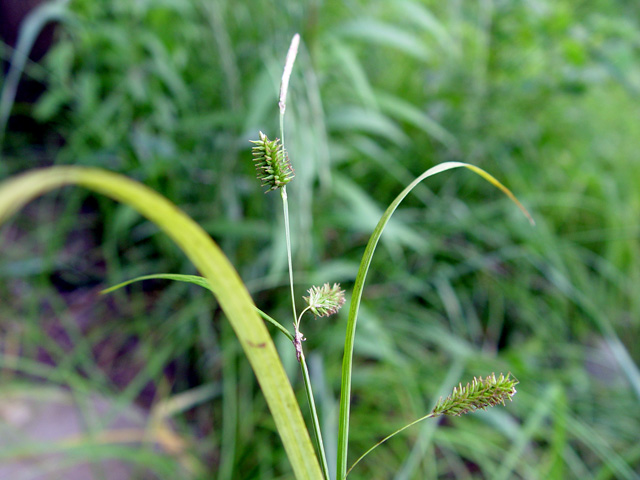 路傍、草原、林床に普通な多年草で、細い匐枝を多数出す。基部の鞘は、淡黄褐色。雌小穂は、短柱形で柄は長い。果胞は、陵間に5−7脈あり、平滑、嘴は長く、口部は2歯