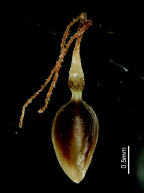 痩果,花柱の基部は膨らむ、柱頭は長く永存する
