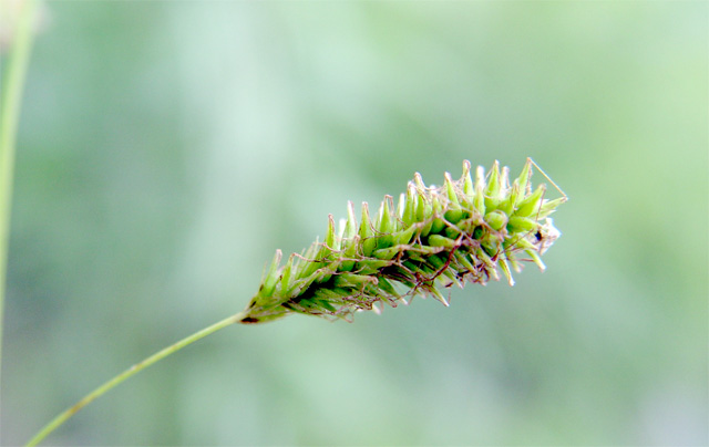 ヒゴクサ 若い花序 白色の柱頭が、雌小穂をおおう 岡山県総社市豪渓 1982年5月15日