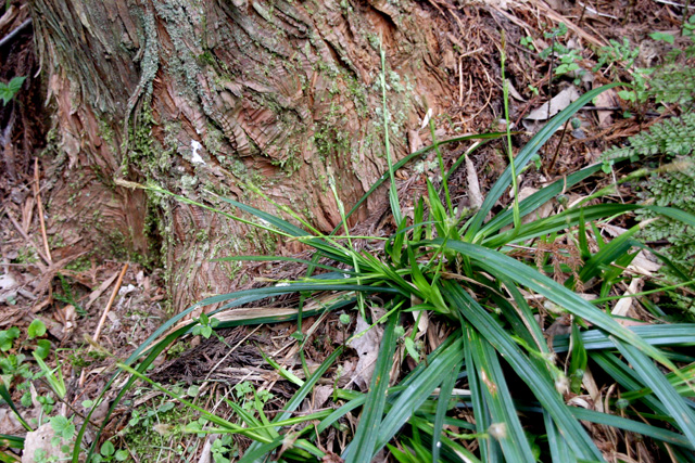 【同定のカギ】やや湿った樹林内に生える多年草で、まばらに叢生する。葉は、幅が8−15 mm。有花茎は、短いものは葉の基部に埋もれる。鱗片は淡褐色。果胞は、雌鱗片より長く、熟すと開出し、短毛があり、嘴は短く1−2 mm、口部は凹形。痩果は、断面が3稜形で中央部がくびれ、頂部は環状となる。柱頭は3岐。【国内分布】北海道、本州(中部地方以北の日本海側)。日本固有。 【ノート】ヒロバスゲは、アオバスゲに似るが、葉の幅が8mm以上で広い、痩果中央部がくびれる、果苞の嘴が短い、痩果の頂部に環状の付属体があることで区別できる。