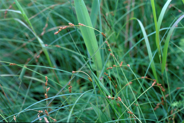 ホソバオゼヌマスゲ 花序 無柄の小穂をやや離れて付ける