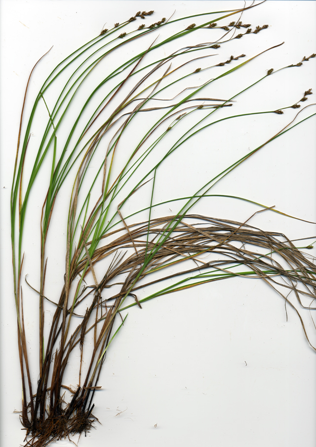 泥炭湿地や湿原に生える多年草で、密に叢生。花序は、5〜7個の無柄の小穂を離れて付ける。果胞、雌鱗片とほぼ同長、無毛、斑点を持つことがあり、厚膜質、短嘴で縁は細鋸歯状、口部は微に2裂