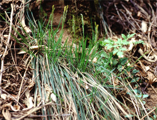 ケスゲ 若い花序 小穂、雄小穂は線状、鱗片は緑白色