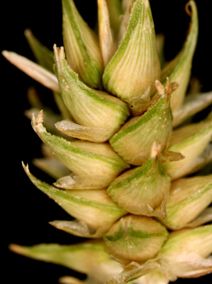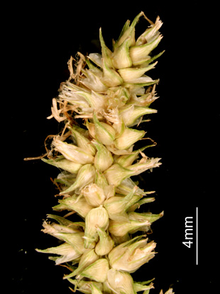 【同定のカギ】開けた草地に生える多年草で叢生し、大株となる。有花茎は平滑。果胞は、雌鱗片よりやや長く無毛、やや長嘴、口部は2小歯、赤い瘤状突起が上部にいくつか見られ、両側は狭い翼があり細鋸歯縁、基部は海綿状に肥厚。柱頭は2岐。Carex paxii Kuk. 【国内分布】岡山県岡山市吉備津彦神社。【国外分布】朝鮮、中国。 【ノート】キビノミノボロスゲは、果胞の上部に赤みがかった瘤状の突起物があることでミノボロスゲの仲間と区別できる。主に中国大陸や朝鮮に広く分布しており、日本では岡山県南部の神社の境内でのみ見られ、神社の禊用に持ち込まれたと考えられる。和名は、中国地方東部の古名である吉備にちなむ。