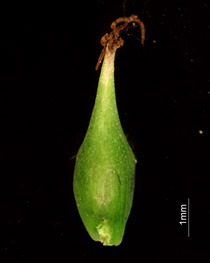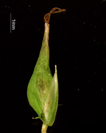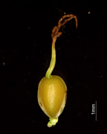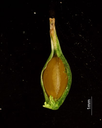 【同定のカギ】平地から山地の湿った樹林内、湿地に生える多年草。葉は粉緑色で、基部の鞘は淡褐色。鱗片は緑白色。果胞は、雌鱗片より長く、有脈、無毛、長嘴、口部は斜切形。柱頭は3岐。【国内分布】北海道、本州、四国、九州、対馬、伊豆諸島(三宅島)。【国外分布】朝鮮南部。 【ノート】コジュズスゲは広い分布域を持ち、変異が大きく、植物体が大きいものから10cmぐらいの小型のものも見られる。大型ものは、グレーンスゲと似ている。植物体が大きく葉幅が広いヒロハノコジュズスゲCarex parciflora var. tsukudensis、果胞が7−8 mmと長いムギスゲforma subsessiliが記載されている。